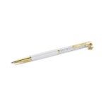 Tanka kemijska olovka ispunjena je s oko 400 prozirnih kristala, koji su vidljivi kroz dugi prozirni prozorčić. Uz tijelo od crvene bijele laka, olovka ima završnu obradu u nijansi zlatne boje i privjesak u obliku potkove, koji se dugo njeguje u svim kulturama kao simbol zaštite i prosperiteta. Njezino bezvremensko značenje čini ovu olovku promišljenim poklonom za mnoge prigode, bilo da nekome želite uspjeh, slavite novi početak ili jednostavno dijelite znak pozitivnosti i brige. Zamjene crne i plave tinte dostupne su za kupnju u Swarovski trgovinama.