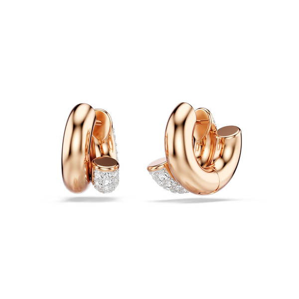 Utjelovljujući industrijski stil Dextere, ove cjevaste naušnice kombiniraju blistavu površinu u Rozo Zlatnoj nijansi s pavéom od prozirnih kristala s jedne strane. Dodatni mehanizam s opružnom pločom osigurava lako oblačenje i skidanje svakog komada. Nosite ove mini naušnice kao prepoznatljiv izbor za vaš dnevni i večernji stil.