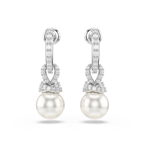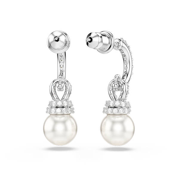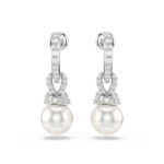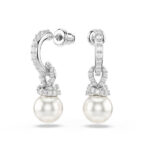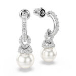 Pojačajte eleganciju u svom stilu ovim Swarovski naušnicama s probušenim vrhom. Rodijom presvučeni komadi imaju otvorene obruče i nježne veze ukrašene pavéom, dok Swarovski Kristal biseri dodaju klasičan dodir čiste profinjenosti. To je nova vizija bezvremenskog izgleda koju možete nositi u gotovo svakoj prigodi.