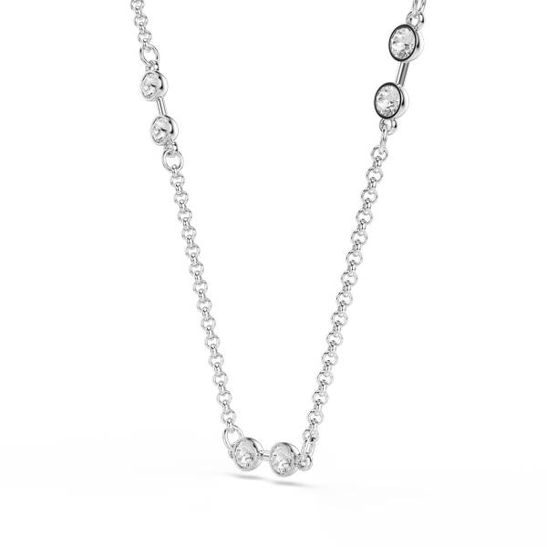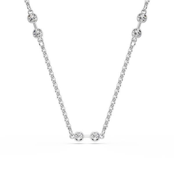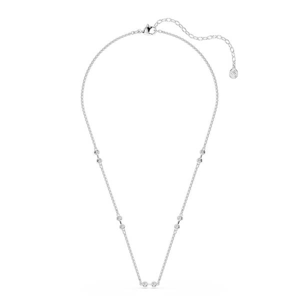 Uživajte u jednostavnosti ove blistave Swarovski ogrlice bez napora. Silueta presvučena rodijem ukrašena je svjetlucavim kristalima u pravilnim razmacima, zajedno s karikama koje mogu biti ukrašene privjescima. Bezvremenski dodatak za osobno samoizražavanje ili elegantan poklon za nekoga posebnog.